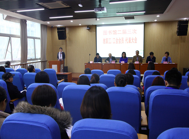 图书馆工会二届三次教代会暨工代会于3月15日召开,图书馆、信息中心共42名代表出席了大会,由工会副主席李敏霞主持。