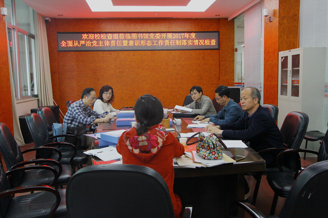 3月30日上午,学校第五检查组刘胜、范焕谦、吴有平、李玉峰一行莅临图书馆党委开展2017年度全面从严治党主体责任暨意识形态工作责任制落实情况检查。