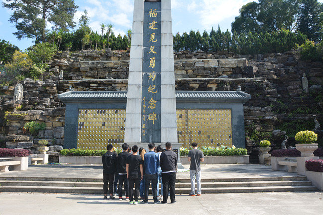 3月31日,动物科学学院部分团学干部来到妙峰山烈士陵园。在庄严肃穆的福建见义勇为纪念碑前,学生会主席边文杰同学致悼词,在场学生低头默哀、鞠躬致意,表达对先烈的深切缅怀和追思之情。通过园内的英烈浮雕和资料记载,同学们更加深入地了解了英烈事迹,为先烈的精神所震撼、所鼓舞。一位吴同学感慨地说到:“先烈们英勇无畏、舍身忘我的精神让我深受感动和震撼,联想到此前热映的《红海行动》,借用网上看到的一句话‘我们岁月静好,是因为有人负重前行’,是先烈们的牺牲换来了我们安定、和谐的今天,我们有什么理由不好好珍惜?!有什么理由不好好努力?!”