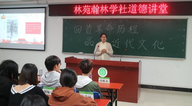 3月23日晚上,林学院在田家炳214教室举办了一场以“回首革命历程,品读近代文化”为主题的道德讲堂。本次讲堂邀请了我校马克思主义学院的王丛丛老师担任主讲。