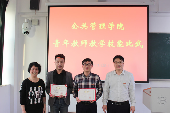 为贯彻落实学校本科教学工作会议精神,提升教师教书育人能力,近日,公共管理学院在田家炳楼504、505教室举行学院首届青年教师教学技能比武,全院40岁以下青年教师参加比赛,评委由院领导、系主任和教务处有关老师以及学生代表组成,比武由副院长周毕芬主持。