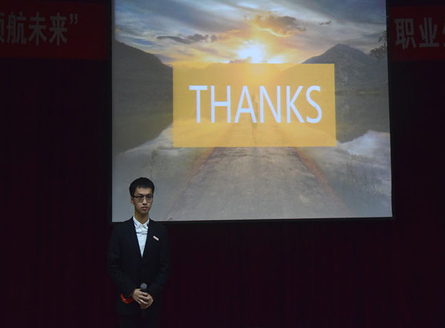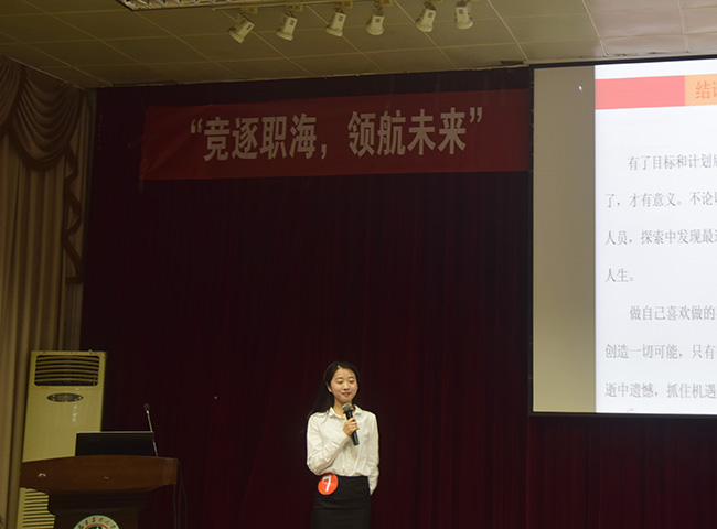 本次大赛以“竞逐职湾,领航未来”为主题,大赛在主持人热情洋溢的开场词中拉开了帷幕。主持人介绍了到场嘉宾以及观众比赛规则后,比赛正式开始。选手们依次上台畅谈各自的职业规划,演讲展示过程中,选手们通过对职业环境以及自我认知分析后确定目标职业,并制定出职业生涯具体的长期目标和可行、具体、适时、连续的实施计划。比赛期间绿萌艺术团的舞蹈演员及歌唱演员为观众带来精彩表演,比赛现场的抽奖小活动也带动了同学们的热情与现场气氛。