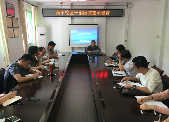4月12日上午,南平校区开展干部廉政警示专题教育。校区党委书记洪诚上廉政专题党课,全体干部参加了学习会。