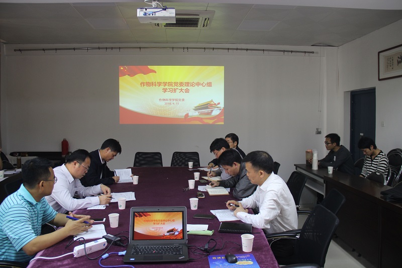 4月11日上午,作物科学学院党委在三楼小会议室召开理论中心组学习扩大会。传达学习习近平总书记在十三届全国人大一次会议闭幕会上的重要讲话精神和全国“两会”精神以及学校新学期工作会议精神。作物学院党政班子成员、党委委员、科级干部参加了此次会议,会议由学院党委书记童庆满主持。