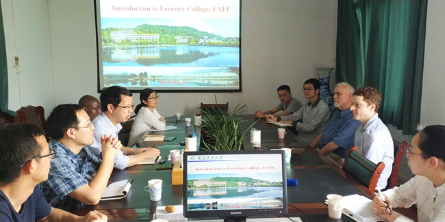 4月13日下午,加拿大不列颠哥伦比亚大学(UBC)林学院Peter L Marshall教授和Patrick D Culbert老师莅临林学院指导交流,院长马祥庆在学院第一会议室接待来访客人。学院相关领域教师及部分博士生参加了交流会。马祥庆对Peter教授和Patrick老师的来访表示热烈欢迎并介绍了学院教学科研的基本情况。Peter教授简要介绍了UBC林学院的基本情况,两位专家同与会教师积极交流教学经验,传授先进的教学方法;并为申请UBC访学的博士生答疑解惑。