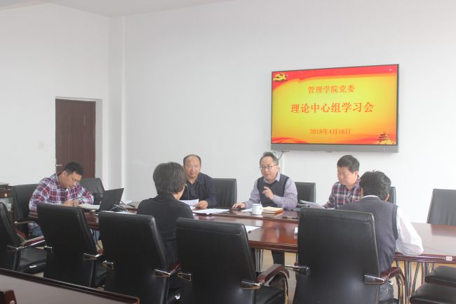 4月16日上午,管理学院党委召开2018年度第三次理论中心组学习会,专题学习习近平总书记在第十三届全国人民代表大会第一次会议上的讲话,学院党委委员参加了学习会,会议由学院党委书记谢志鸣主持。