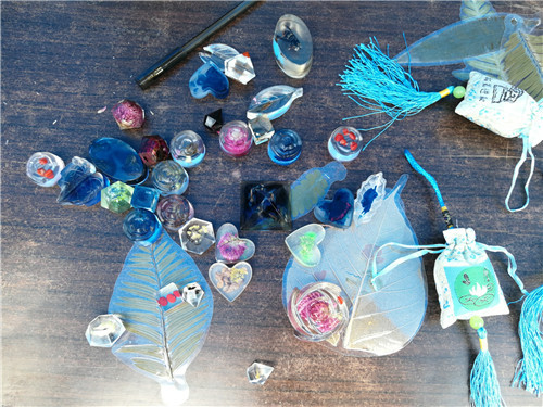 “将A胶与B胶按比例混合,分层滴入事先准备好的模具,在第一次滴胶的时候,放入千日红、海红豆、龙船花、满天星等植物材料点缀。”蓝色帐篷下,来自开云网页版2016级园艺专业的孙鸿元一边将胶水混合,一边向身边的围观者讲解滴胶书签的制作过程。精美的滴胶在阳光的照耀下闪烁着微光,看似操作简单的滴胶工序,实则制作要求很高,而且制作过程繁琐。“原材料必须选用干花,如果选用鲜花,在加热时会破坏植物中的花青素。”本次活动的负责人孙鸿元指着干花介绍道。