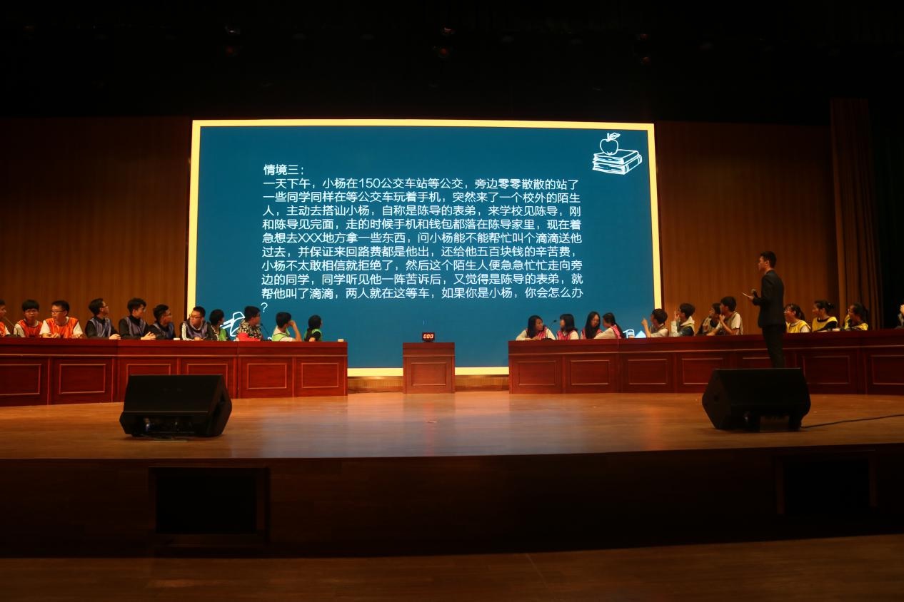 决赛分为三个环节。第一环节是八进四抢答赛,每支队伍在大屏幕出现题目后随主持人口令进行抢答,题目涵盖校园安全、食品安全、国家安全等方面的知识,这一环节考察参赛队伍对安全理论知识的掌握程度。第二环节是四进二情景模拟,每支队伍抽取一道情景题,根据题中所给的信息轮番上台进行情景模拟操作,题目包括心肺复苏急救题、宿舍消防安全题、防诈骗题等,该环节考察同学遭遇紧急状况和突发事件是否能够采取正确应对措施。最终比赛为一站到底,两队轮流答题,决出最终胜负。活动邀请陈少强医生、校区保卫工作办公室主任李龙仲对情境模拟环节进行点评和讲解。