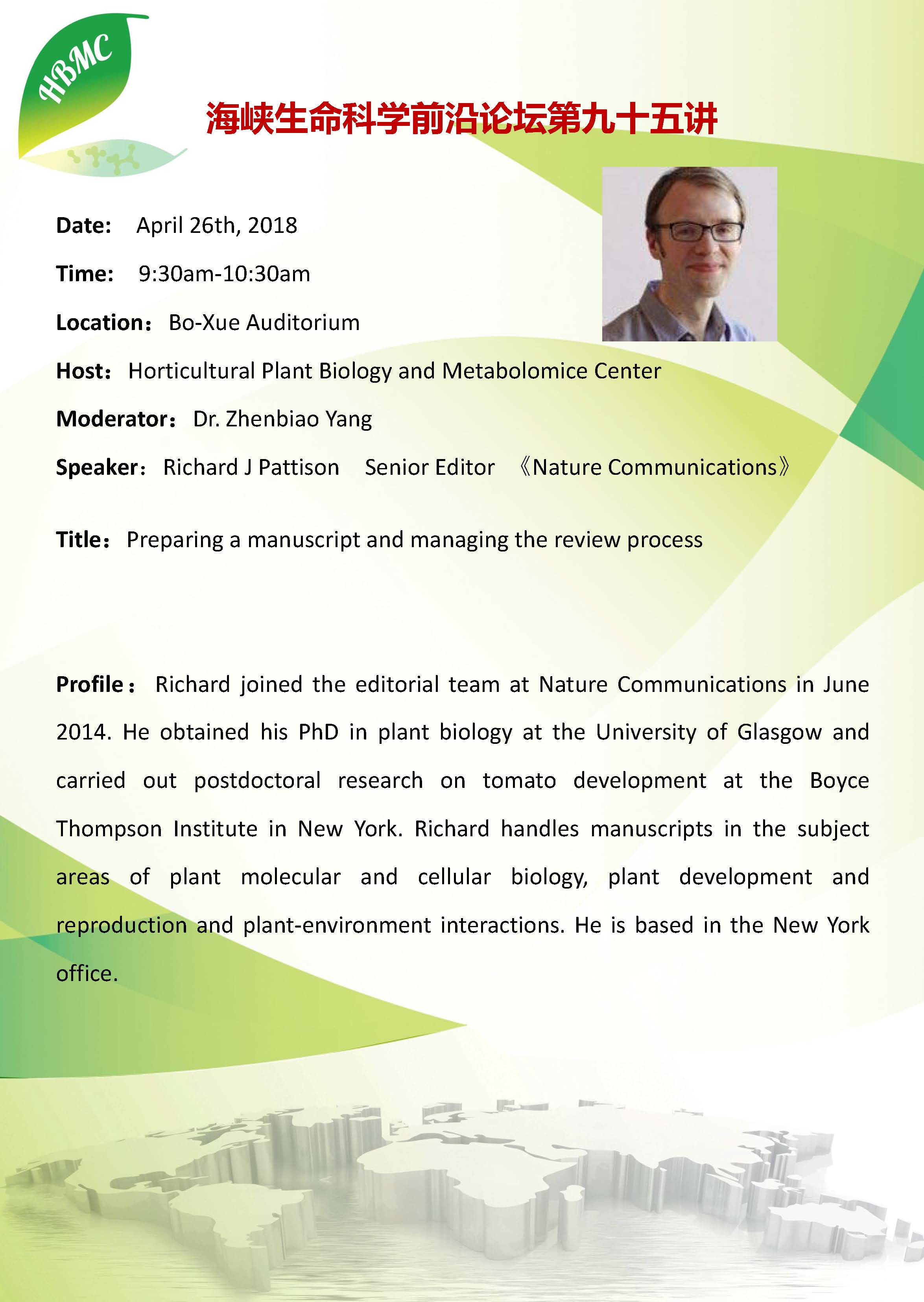 海峡生命科学前沿论坛第九十五讲(2018.4.26)-Preparing a manuscript and managing the review process