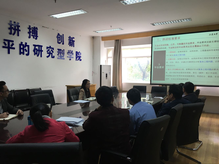 江苏大学机械工程学院院长任旭东、副院长许桢英热情接待了大家,就工程认证等相关事宜进行了交流讨论,并分享了江苏大学机械设计制造及其自动化本科专业建设的改革方法与成效。许桢英还详细介绍了江苏大学机械工程专业2015年通过教育部工程专业认证的情况,总结了专业认证过程中的经验与心得。