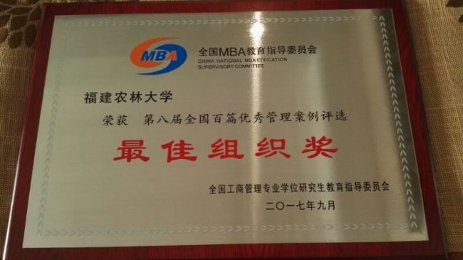 4月20日,2018年度全国MBA培养学校管理学院院长联席会议在北京召开,管理学院获得第八届“全国百篇优秀管理案例评选最佳组织奖”,我校是全国农林高校和福建省属高校唯一获奖高校。