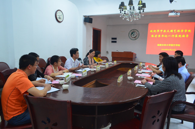 4月23日,华中农业大学园艺林学学院党委书记张宏荣、副院长王春潮、罗正荣教授、本科教学办公室主任秦喜秀等一行4人来园艺学院就学科建设、本科教学等方面进行调研。学院党委书记张华英、院长陈清西、副院长曾黎辉、办公室主任、教学秘书、科研秘书等参加了本次调研。
