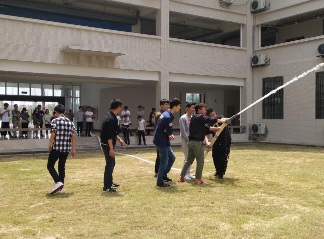 4月下旬,学院组织安全员进行消防演练活动,负责该活动的钟机老师向学生们讲解灭火器、消火栓箱的使用方法,并让学生进行实战演练,增强其遇危险的应变能力。