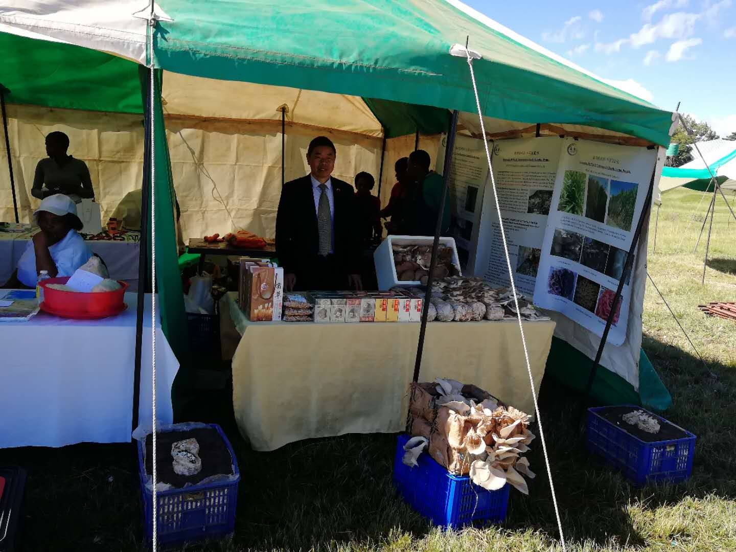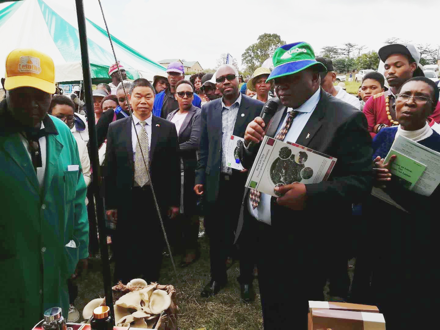 马哈拉∙莫拉波在开幕式上介绍了中国菌草技术以及中国援莱索托菌草项目,对项目成效给予高度评价,指出菌草技术对莱索托的粮食安全、减贫、创造就业与保护环境具有重要的意义。到菌草项目展位参观时,他还向来宾介绍菌草技术,参观人员络绎不绝,把小小的展位围的水泄不通。专家组不仅准备了宣传资料和各类菌草产品,热情推介菌草项目,还准备了适合当地饮食习惯的菌草菇菜品,来宾现场品尝后赞不绝口。