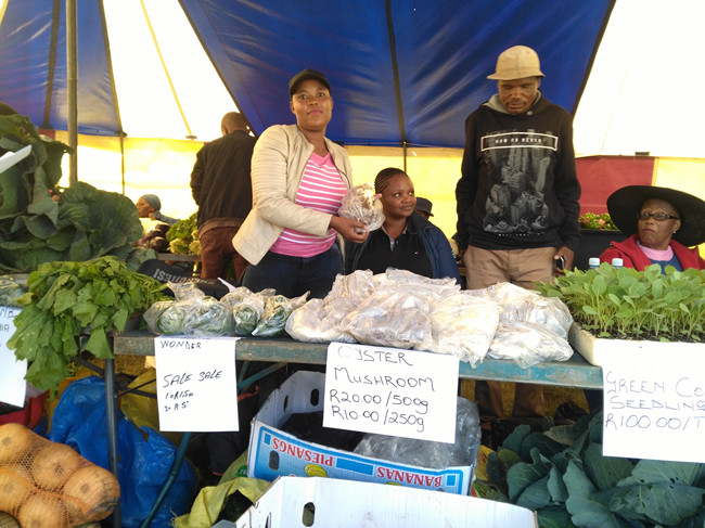 项目推广农户在展会售卖菌草菇,售价每市斤20莱币(合10元人民币)