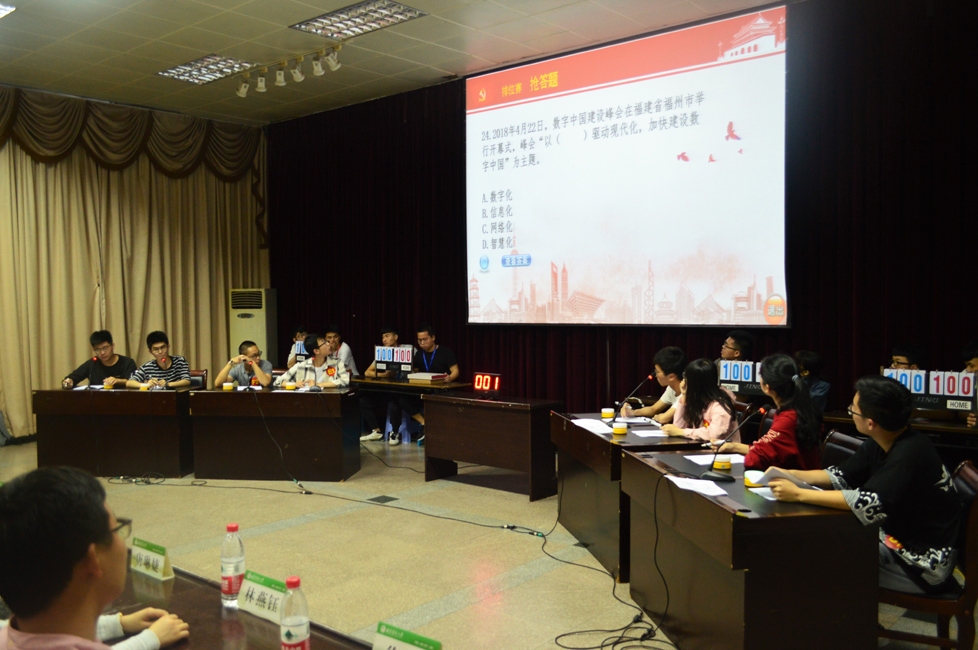 决赛分为挑战赛和排位赛两个环节,内容涵盖了《马克思主义基本原理概论》、《毛泽东思想和中国特色社会主义理论体系概论》等课程以及十九大报告和习近平总书记系列重要讲话精神等内容。经激烈角逐,林颖同学获得一等奖,林绮雯和吕沛鑫同学获得二等奖,傅逸飞、黄泳怡、卢金亮三位同学获得三等奖。