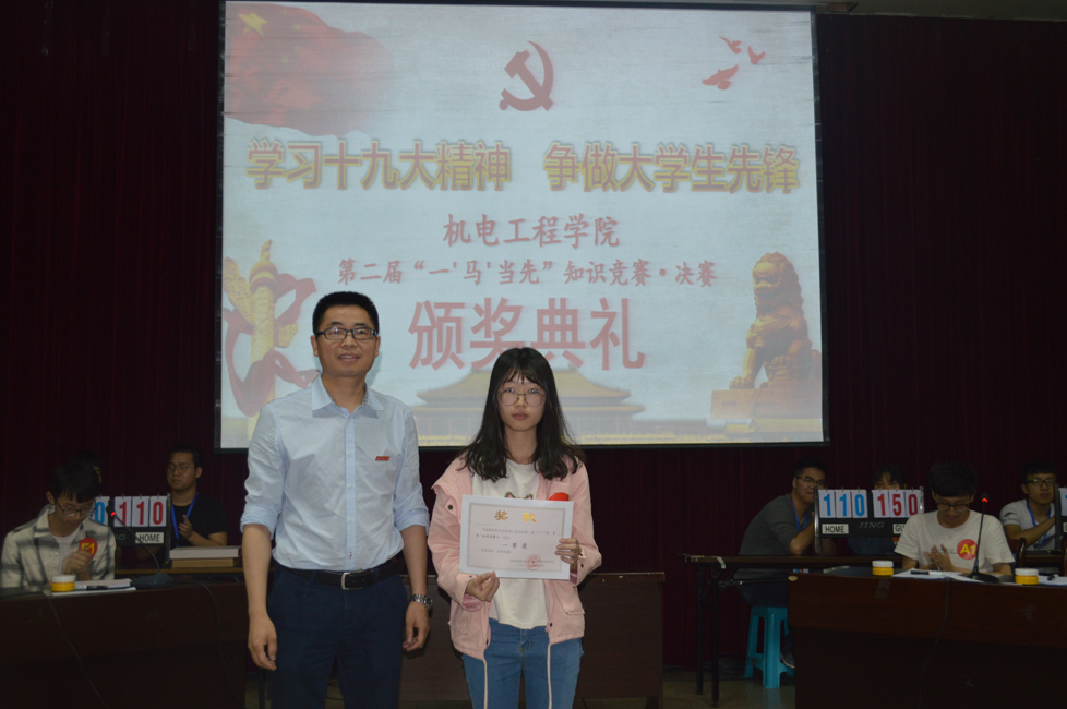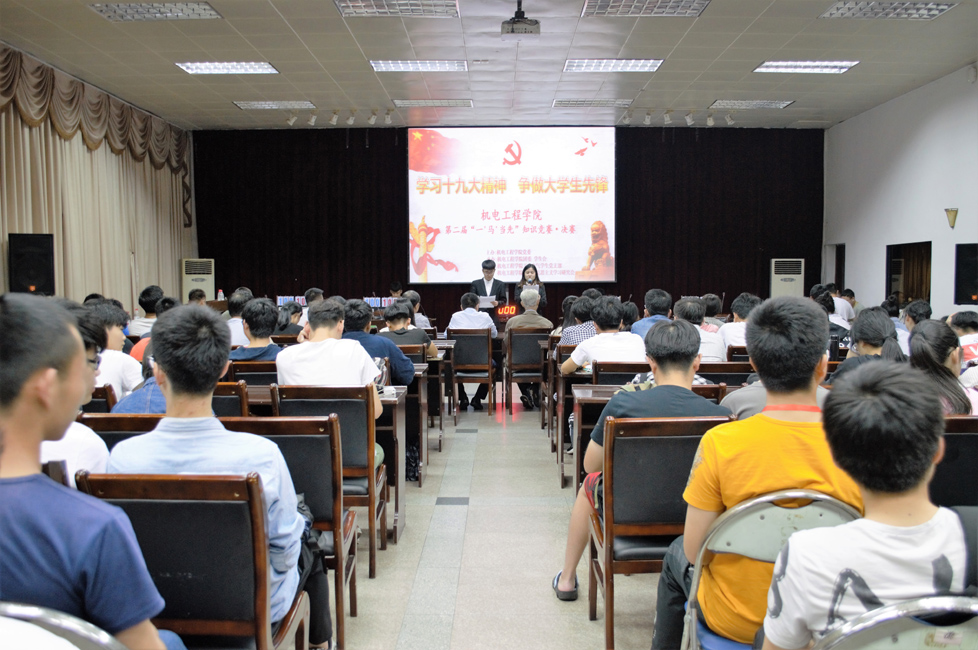 4月24日,由机电工程学院主办的 “一‘马’当先”知识竞赛决赛在校多功能厅举行。校关工委副主任兼秘书长陈辉钦、校关工委副主任兼院关工委副主任何聪惠、院党委书记陈辉、院党委副书记李健英、副院长陈学永以及各年级辅导员和学生代表近200人观看了比赛。