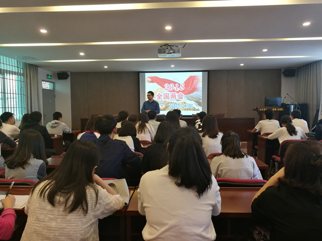 王彬彬老师从两会会议的名称释意、召开的时间、与会代表构成等基本概念入手,结合同学们的日常生活,深入浅出地讲解会议重要精神。之后,王彬彬老师与现场学员互动交流,认真解答同学们提出的疑惑,精彩的解析不时赢得同学们的阵阵掌声,课堂气氛愈加活跃。最后,王彬彬老师对现场学员提出几点建议,希望大家要主动适应社会,牢牢把握机遇和挑战,好好珍惜在校学习的日子,合理有效得利用学校提供的各种平台,提高个人的综合素质。