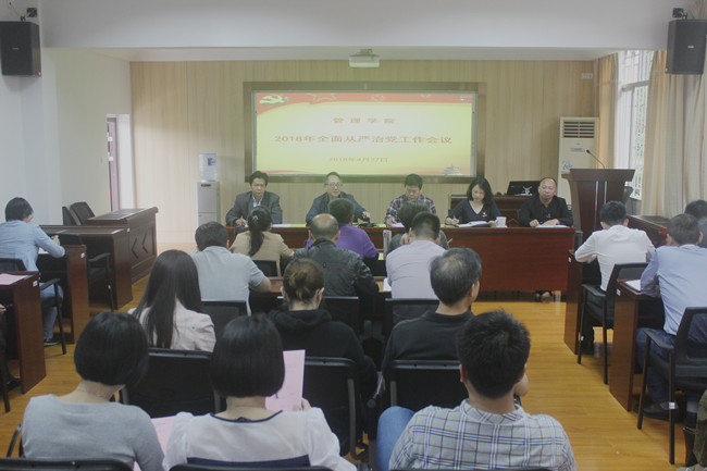 4月27日下午,管理学院召开2018年全面从严治党工作会议,深入学习贯彻习近平新时代中国特色社会主义思想,党的十九大、十九届中纪委二次全会精神、省纪委十届三次全会和学校2018年全面从严治党工作会议精神,总结2017年学院全面从严治党工作,部署2018年全面从严治党重点任务。学院领导班子成员出席了会议,院党委副书记王小榕主持会议。