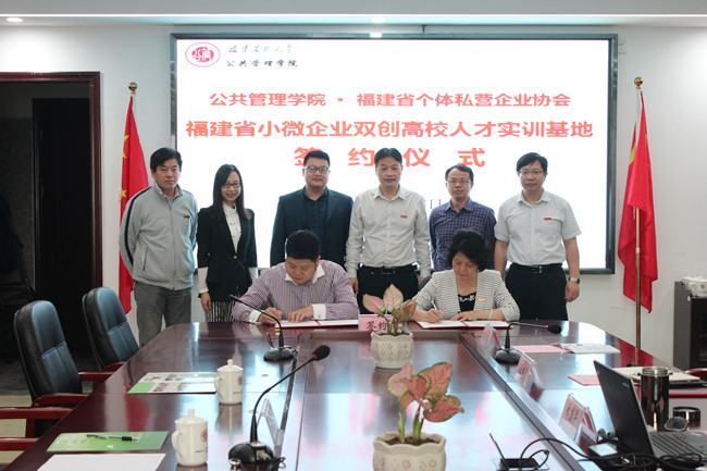 4月27日下午,由公共管理学院与福建省个体私营企业协会发起共建的福建省小微企业双创高校人才实训基地,在东苑10号楼512会议室举行签约仪式。公共管理学院领导班子成员和福建省个体私营企业协会茶专业委员会秘书长陈志强参加了座谈和签约仪式。