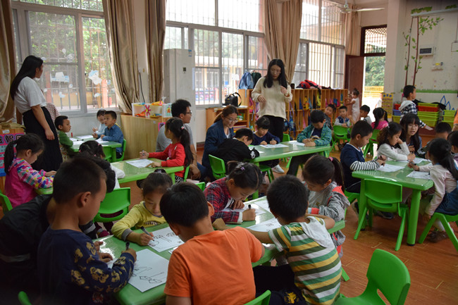 前往校附属幼儿园的支教小分队共计9人。因临近五一劳动节,此次美术课主题设定为“小小清洁工”,绘画的作品为劳动工具。课堂共分为三个环节:教学环节、互动环节以及点评环节。在点评环节中,有几个小朋友画的特别好,但由于性格内向怯于表达,通过老师和同学的共同鼓励,他们勇敢上台为大家讲述了自己作品的含义,获得了大家的掌声。