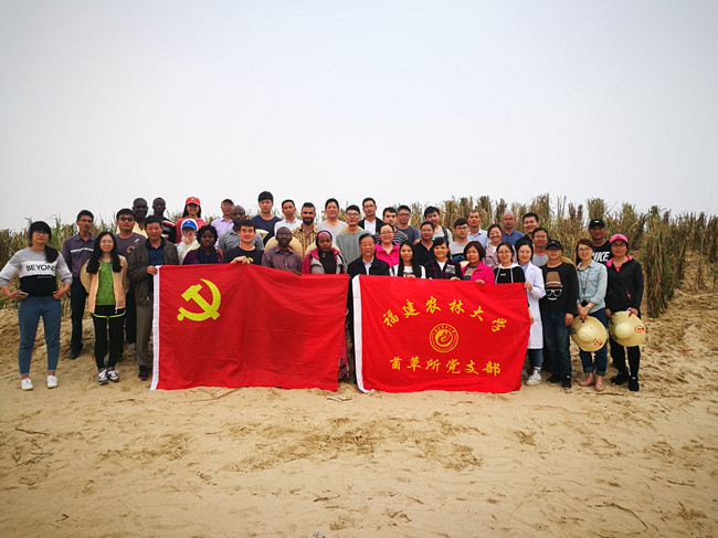 4月12日,全国先进基层党组织----生命科学学院菌草所党支部组织全体党员前往平潭长江澳滨海沙滩开展“海滨生态治理”主题党日活动。党支部全体党员、菌草所部分职工、研究生和留学生共计59人,在党支部书记林占熺研究员的带领下,在平潭长江澳滨海沙滩共同种下了袋培菌草小苗5000株,盆栽菌草1000多丛,让党旗飘扬在防风治沙第一线,为平潭综合实验区美丽生态海滨建设当表率作贡献。