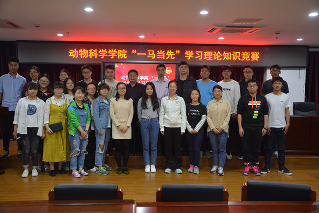 4月26日,动物科学学院在圣农动物科学楼七楼大会议室举办“一马当先”大学生学习马克思主义理论知识竞赛决赛。动物科学学院党委书记池有忠、党委副书记戴意生、辅导员赵佳懿和吴群莅临现场指导活动,各年级各班组织前来观赛、学习的亲友团共计50余名,现场气氛热烈。