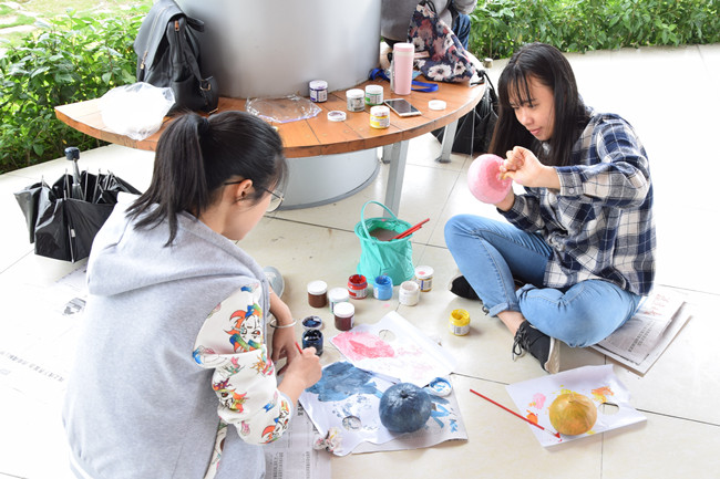 活动通过手绘南瓜的方式展现学院学子风采,同学们用画笔巧妙地在南瓜上勾勒出自己的所思所想,有惟妙惟俏的动漫人物、有梵高大师的著名作品《星空》,还有许多同学将自己对祖国的美好祝愿描绘出来,如作品“五星光芒照大地”、“学习十九大”等。绘画现场趣味横生,吸引了不少市民、游客驻足观看。随后,由学院青年志愿者协会组织义卖活动,本次义卖所得将全部捐赠给福州市第二社会福利院,来往的市民和游客们纷纷献出自己的爱心,期盼着能为孩子们献出绵薄之力。
