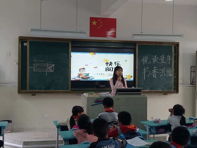4月26日,计算机与信息学院青年志愿者工作服务部成员携支教志愿者前往洪塘中心小学,为三年级学生开展以“悦读童年,书香洪塘”为主题的班会志愿服务活动。