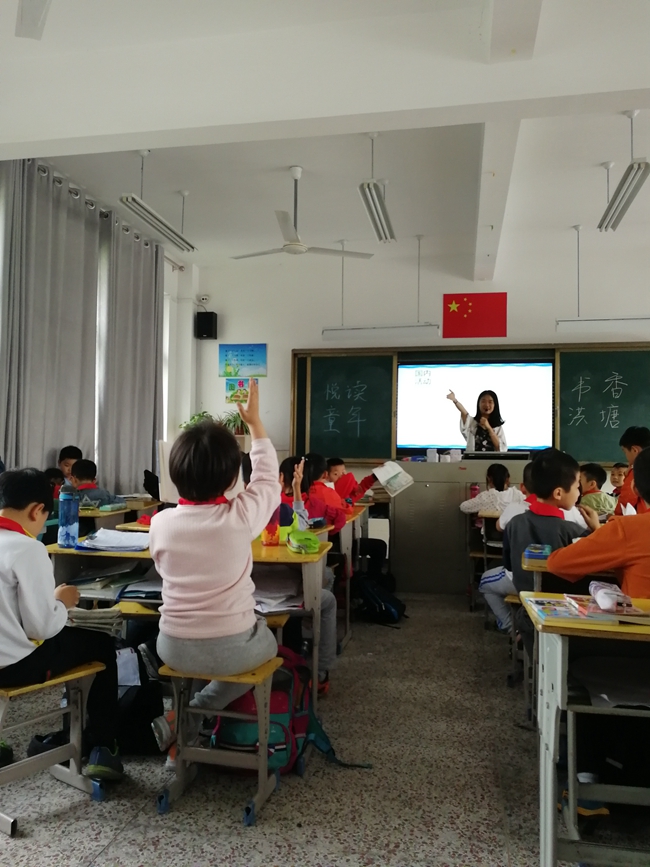 下午4点,支教志愿者开始授课,围绕“4·23世界读书日”,向同学们讲述了创立读书日的目的及意义,让同学们认识到读书的重要性,进一步引导同学们向“读书好,多读书,读好书”的方向靠拢。随后,志愿者们向同学们分享了关于读书的名言警句、历史故事等,做到“让知识流动起来,让快乐传递下去”的活动宗旨。最后,支教志愿者带领全班同学开展了一次“好书分享会”,同学们在课堂上畅所欲言,互相分享自己喜爱的书籍,课堂气氛活跃。