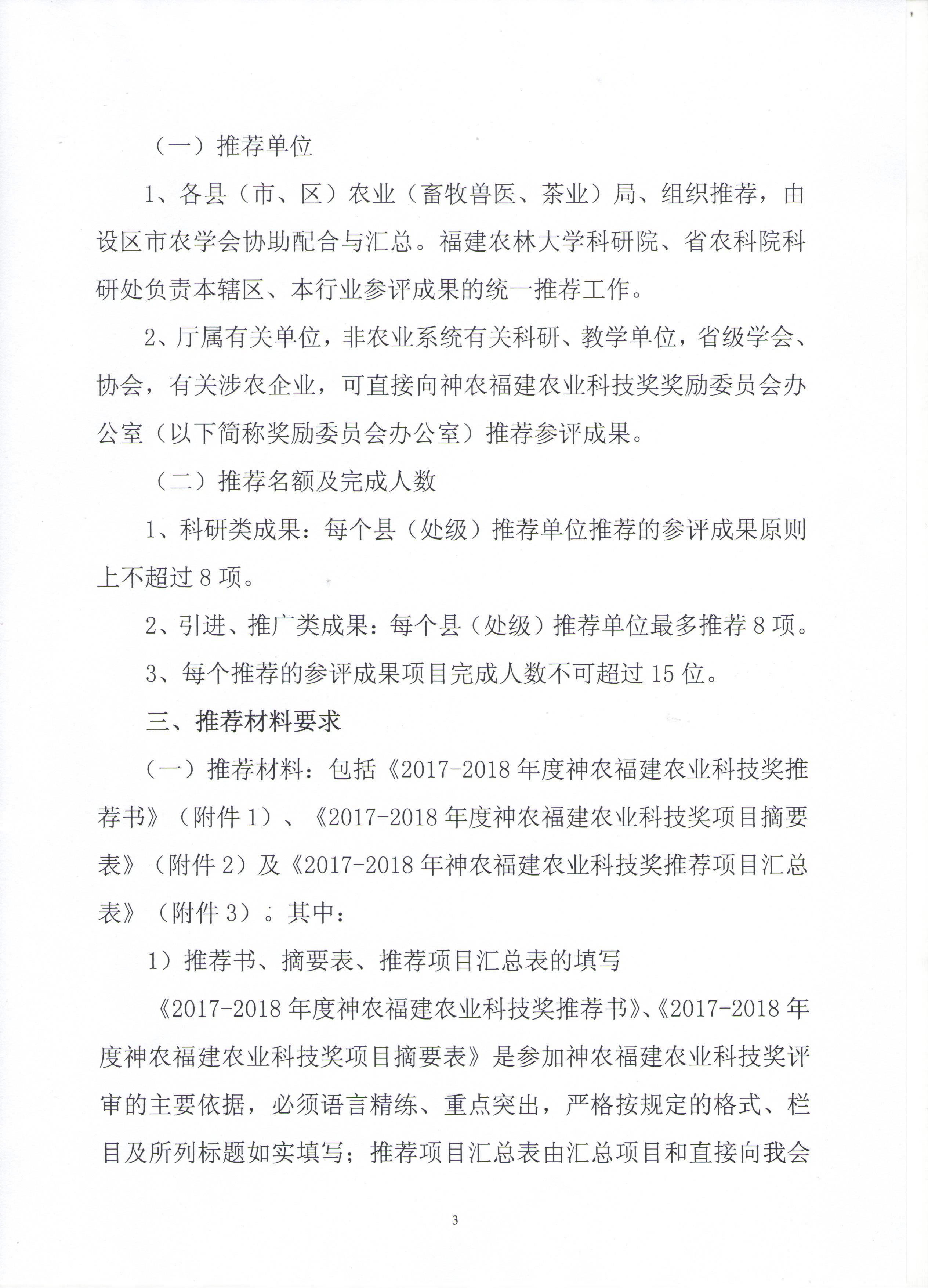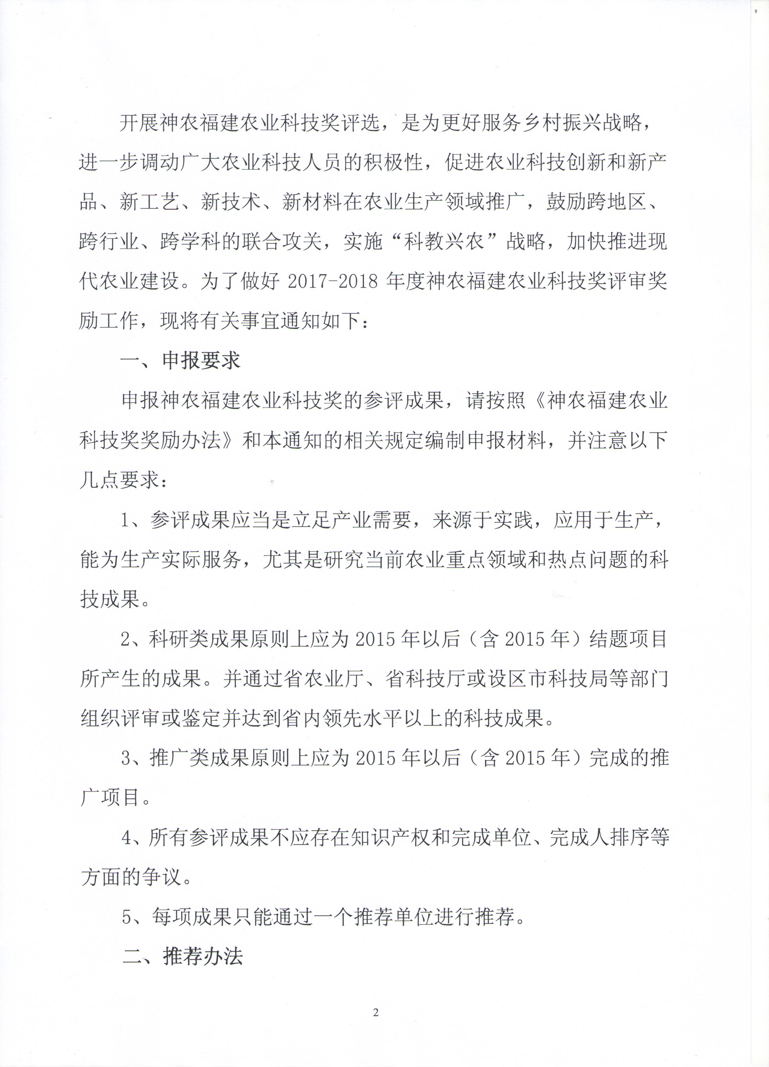 关于推荐2017-2018年度神农福建农业科技奖的通知