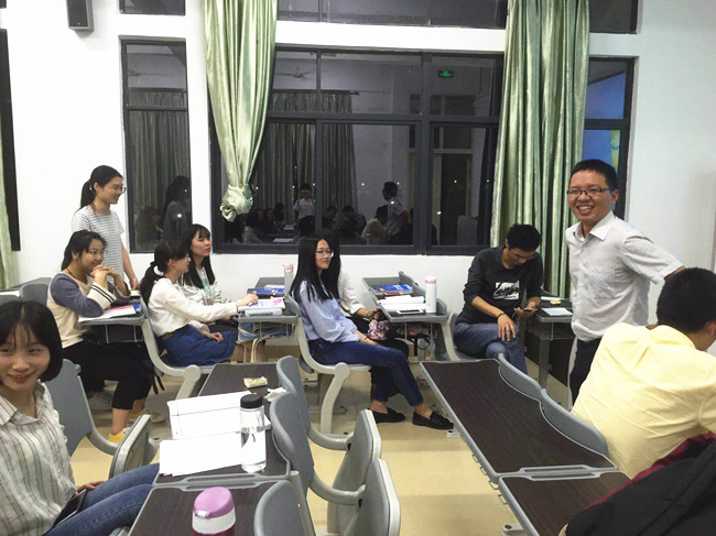 当晚,各专业师生在班级所在教室,围绕专业培养目标、就业前景、考公考研、保研、选调、大学生村官、“挑战杯”大学生课外学术科技作品参赛、大学生创新创业训练计划项目申报、暑期“三下乡”社会实践活动、导师安排等话题,进行了充分的交流互动。交流活动从晚上7点一直持续到9点半,会场欢声笑语,气氛热烈,老师们耐心地回答了同学们提出的各种学习和生活问题,解答同学们思想上的困惑。