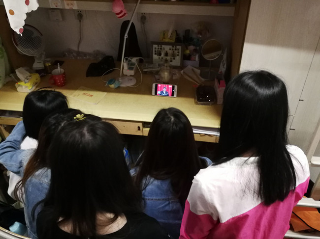 机电工程学院学生在宿舍用手机收看纪念马克思诞辰200周年大会直播