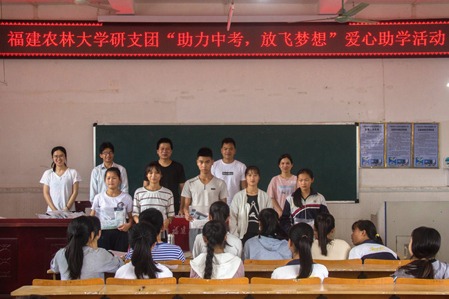 在五四青年节之际,为鼓励九年级学子积极备战中考,努力实现梦想,勇攀高峰,日前,我校第十九届研究生支教团在广西来宾市武宣县通挽镇中学开展“助力中考,放飞梦想”爱心助学活动。