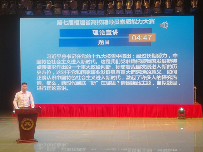 据悉,本届大赛由省委教育工委主办,教育部高校辅导员培训与研修基地(福建师范大学)、省高校思想政治教育研究会辅导员专业委员会承办,旨在提升高校辅导员的理论水平、专业素养和宣讲能力,全面提高辅导员工作的针对性和亲和力,进一步提升辅导员队伍的整体素质。此次赛事分为学校初选、省级复赛和省级决赛三个阶段,通过基础知识测试和网文写作、案例分析、谈心谈话和理论宣讲等竞赛环节,全方位考察高校辅导员素质能力,展示高校辅导员风采。全省各高校共有75名辅导员参加省级复赛,有21名选手入围省级决赛。经过激烈比拼,共产生一等奖3名,二等奖7名,三等奖11名。我省将择优推荐3名辅导员参加全国决赛。