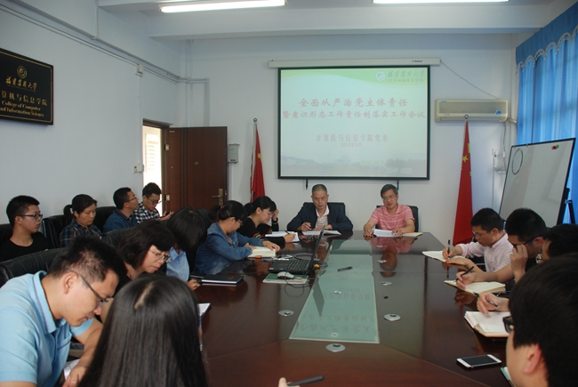 5月10日上午,计算机与信息学院召开党支部书记会议,专题讨论2018年全面从严治党主体责任暨意识形态工作责任制落实工作。学院党委书记陈宜大,副书记吴鹏程,师生党支部书记参加会议。会议由陈宜大主持。