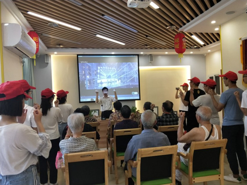 活动中,志愿者们和金太阳服务中心的工作人员一起来到社区,志愿者们给老人们细心得按摩;同时,志愿者们现场与老人们一同做健美操、手掌操,与他们一起分享健康知识。老人们还为志愿者们演唱了文艺歌曲,现场一派欢乐和睦的景象。最后,志愿者们为在场的爷爷奶奶送上自己制作的丝网花,以表达自己的祝福之情。