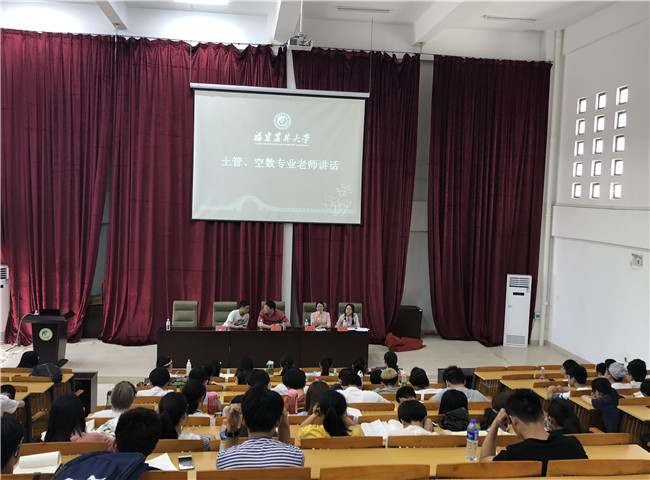 会上,毋亭、姜春老师首先为同学们介绍土管、空数两个专业的专业课程,分析了就业方向及就业前景,希望同学们在大学里能努力充实自己、学好专业知识、夯实基础、学有所成。15级学生代表向同学们介绍了福州校区的团学工作,鼓励同学们回到本部后积极参与团学工作、在学生工作中的得到自我锻炼、自我提升。