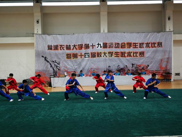 学生武术比赛于5月5日下午在下安体育馆举行。本届比赛有12支代表队参加。经过1天的激烈角逐,动物科学学院以较大的优势获得团体总分第一名,二到八名分别是:林学院、金山学院、作物学院、管理学院、经济学院、交通学院、机电学院。