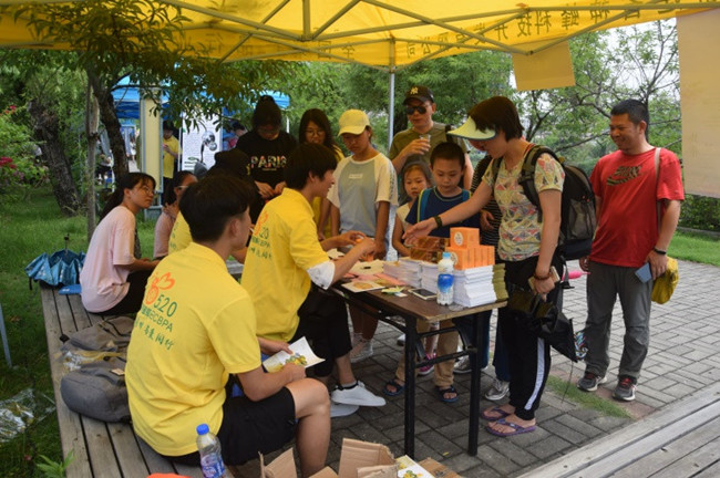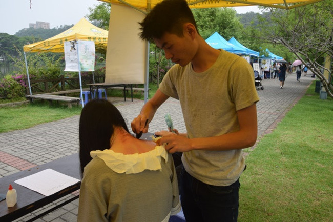 同时活动现场进行蜂疗义诊活动,吸引了大批同学体验蜂产品刮痧疗法,以此来缓解身上的不适。同时还有各类蜂产品品尝,让大家在炎热的天气里,感受不一样的清凉与甜蜜,传递蜜蜂辛勤酿蜜,无私奉献精神。更有学院温学长大学生蜂蜜创业团队介绍团队理念并进行产品展示,以纯正蜂产品让大家对蜜蜂产品的认识有了更深的理解。现场还有蜜蜂知识竞答与蜂产品科普读本赠送环节,竞答的方式不仅能体现出游戏的趣味性,更加深大家对蜜蜂知识的认识程度。
