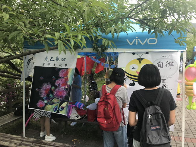 本次蜜蜂文化节跨度两周,在5月20日蜜蜂日达到高潮,当日以书法、油画、蜂蜡制品、摄影作品等形式展现蜜蜂团结、奉献、勤勉、求实、自律、勇敢精神。如16蜂学1班团支部的钻石十字绣上的“蜂华正茂”字样,体现了齐心协力、精诚合作的团结意识,《本草纲木》上说“蜂有礼范”,蜜蜂群体内部有严密的分工。蜜蜂王国是由尊贵繁忙的蜂王、职责专一的雄峰、勤奋勇敢的工蜂所组成的,它们分工合作,各司其职,完成构筑蜂巢、清理蜂房、菜花酿蜜、服侍蜂王、照料蜂卵、保暖降温、安全保卫等等,维护共同的家园,由此建构起一个次序井然、高效运转的和谐昆虫小社会。这幅钻石十字绣也是由团支部同学一起共同完成 ,这给人们以遵章守纪、恪尽职守的有益启示。16蜂学3班团支部的蜜蜂对抗外来的入侵的照片,这体现了蜜蜂坚强勇敢、执着追求的敬业情操。