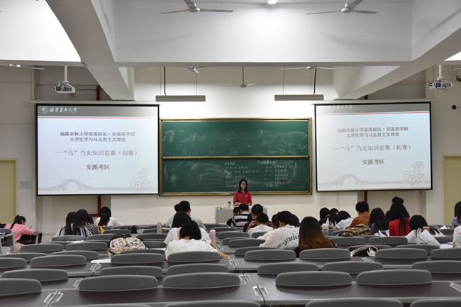 为深入学习宣传贯彻习近平新时代中国特色社会主义思想和党的十九大精神,贯彻落实全国和全省高校思想政治工作会议精神,纪念马克思诞辰200周年和《共产党宣言》发表170周年,5月17日晚,安溪校区•安溪茶学院在安100-1室组织开展主题为“学习新思想--让真理永远闪烁耀眼光芒”的第二季大学生学习马克思主义理论“一‘马’当先”知识竞赛。