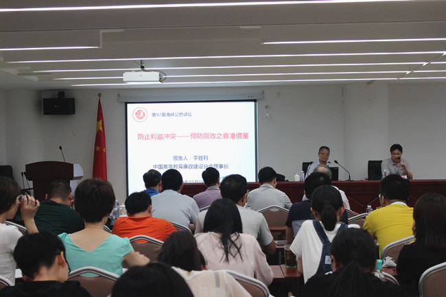 李胜利理事长紧紧抓住预防性制度特性,通过理论分析、法理释义、案例剖析等多个视角,跟大家分享香港防止利益冲突较为成功的实践经验并提出了借鉴建议。此次讲座对于深入贯彻习近平总书记在十九届中央纪委二次全会上的重要讲话精神,特别是更好地理解“要通过改革和制度创新切断利益输送链条,加强对权力运行的制约和监督,形成有效管用的体制机制”,具有很好的启发意义。