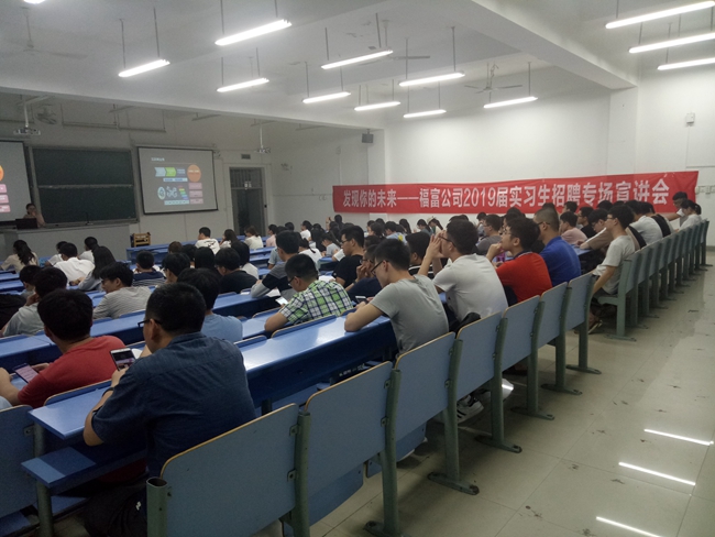 宣讲会上,福富公司宣讲负责人为到场的2019届毕业生介绍了公司的基本情况、企业文化、实习生录用体制、正式员工薪资待遇等。随后,宣讲负责人详细讲述了准毕业生如何在IT领域更好的进行职业发展,鼓励同学们努力学习专业知识,早日实现自己成才就业的梦想。