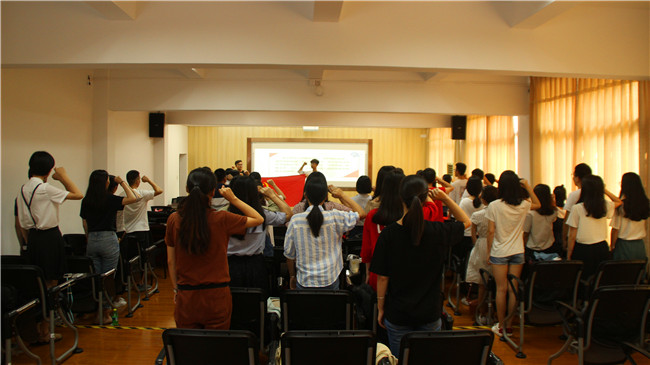 活动围绕“有国才有家”“不忘初心”“牢记使命”“重温入党誓词”4个主题共12个环节开展,旨在展示党支部的创造力、凝聚力和战斗力及全体党员砥砺前行、积极向上的精神风貌。歌曲《国家》《红旗飘飘》等的演唱,唱出了大家心中的爱国情怀,唱出了中华儿女的自豪。《新时代青年》等朗诵节目充分表达了新时代青年大学生要找准新定位、完成新要求,响应新时代的号召,积极承担当代青年大学生的历史使命和肩负的时代责任。最后,支部全体党员面向党旗庄严宣誓,重温入党誓词,将本次的主题党日活动推向了高潮。