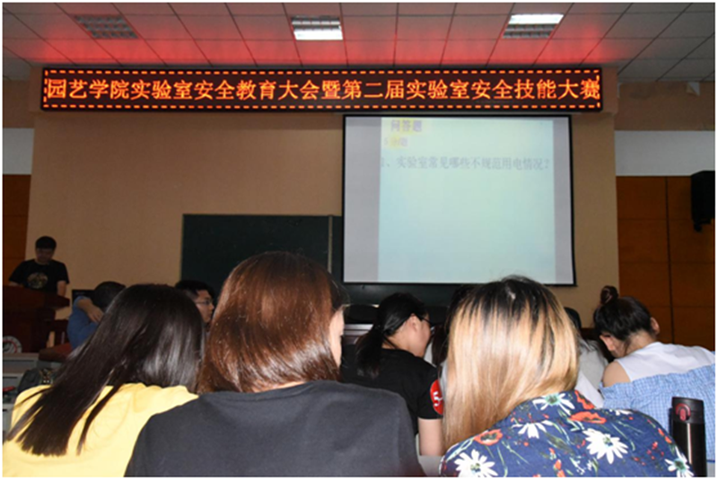 5月27日下午,园艺学院在生物楼510教室举办实验室安全教育大会暨第二届实验室安全技能大赛,院实验实训中心主任王平教授、研究生辅导员叶一江和100多名研究生出席本次活动,共有来自不同实验室的15支队伍报名比赛。