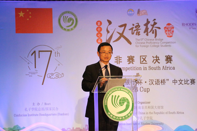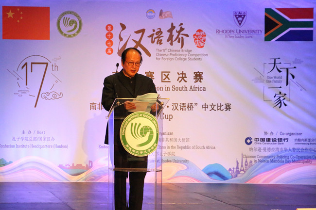 比赛在极具中国文化特色的舞狮表演中拉开序幕。罗德斯大学副校长皮特·克雷顿(Peter Clayton)博士、中国驻南非大使馆文化参赞郑文、中国驻南非教育组负责人王道余、中国建设银行约翰内斯堡分行总经理张进国、南非纳尔逊·曼德拉市教育局长厄内斯特·戈宫佐拉(Ernest Gorgonzola)出席了本次大赛并分别发表致辞。