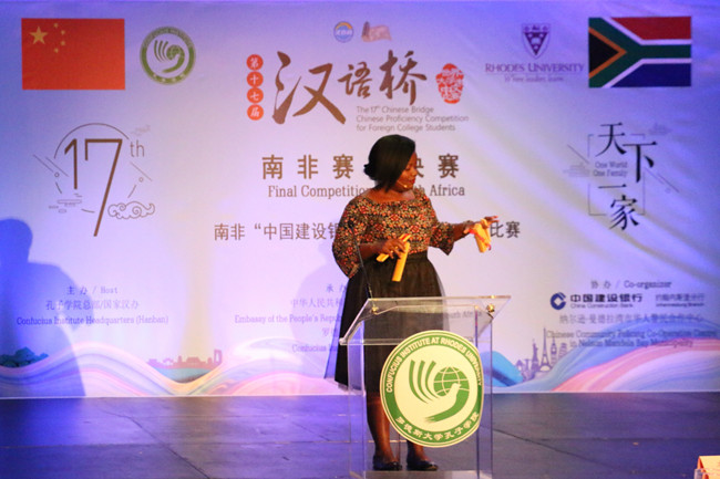 当地时间5月26日,由孔子学院总部/国家汉办主办,罗德斯大学孔子学院承办的第十七届“汉语桥”世界大学生中文比赛暨“中国建设银行杯”南非赛区决赛在伊丽莎白港(Port Elizabeth)举办,来自南非六所大学的21名选手参加了本次角逐。德班理工大学孔子学院学员温蒂表现优秀,获得本年度“汉语桥”南非赛区决赛三等奖的好成绩。