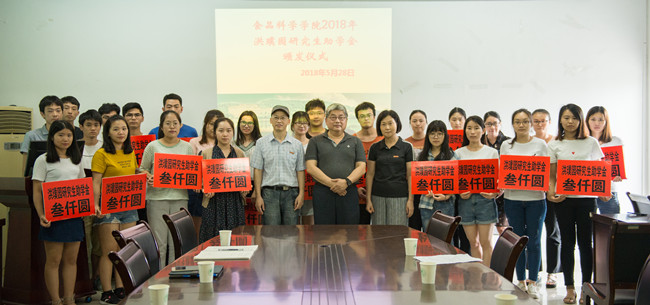 5月28日下午,食品科学学院2018年“洪璞园研究生助学金”颁发仪式在学院406会议室举行。洪璞园(福建)农业科技有限公司总经理杨志峰、学院党委书记孙淑芹、院长庞杰为2018年受助学生25人颁发助学金共计7.5万元。