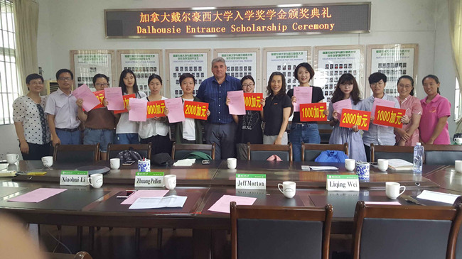 我校中加合作办学项目9名学生获得加拿大戴尔豪西大学入学奖学金,颁奖仪式于5月29日上午在海外学院举行。戴尔豪西大学教师Jeff Morton,海外学院部分师生参加。仪式由海外学院副院长魏丽卿主持。